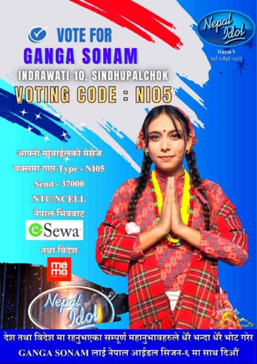 गङ्गा सोनाम सिन्धुपाल्चोकको गौरव हुन् । आज पनि, भोलि पनि । नेपाल आइडलको उपाधि घर ल्याउने सपना हामी सबैको साझा सपना हो।